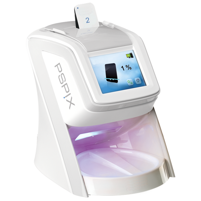 PSPIX 2 – система для считывания рентген снимков с экраном предварительного просмотра и пластинами памяти.