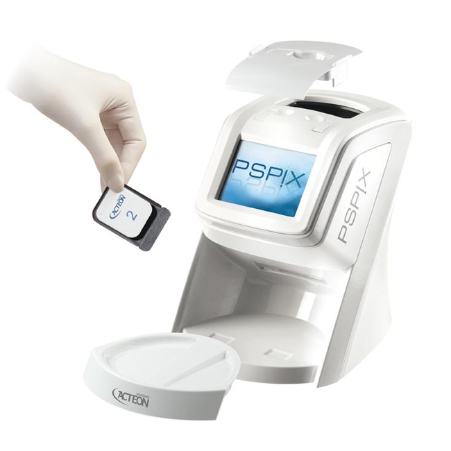 Беспроводные пластины используются интраорально вместо датчика или пленки, затем сканируются, и изображение выводится на экран выбранного компьютера. После считывания, снимок с пластины автоматически стирается. PSPIX 2 намного надежнее в эксплуатации по сравнению с радиовизиографом из-за отсутствия кабельного соединения между пластиной и блоком оцифровки. Система совместима с любыми рентген аппаратами.