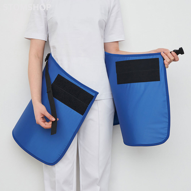 Юбка рентгенозащитная в отличае от передника закрывает область таза со всех сторон. Свинцовый эквивалент - 0,5 мм Pb. Вес: 3,75 кг (винил), 4,5 кг (резина).