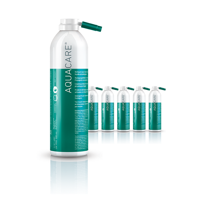Aquacare - чистящее средство в виде спрея, 500 мл 6 шт. Представляет собой аэрозоль для очистки прямых и угловых наконечников и микромоторов, используемых с физиологическим раствором. В особенности рекомендуется для очистки инструментов для имплантологии и стоматологической хирургии. Очищает ирригационные трубки и растворяет загрязнения. Следуйте рекомендациям, которые содержатся в руководстве по эксплуатации каждого инструмента.