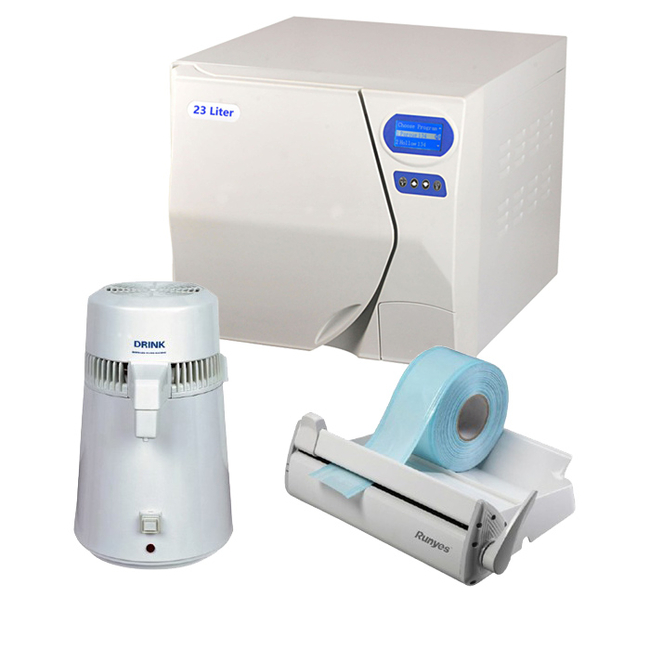 Готовый комплект стерилизационного оборудования поможет разом решить проблему дезинфекции инструментов в стоматологической клинике или кабинете. В данном наборе есть всё необходимое для ежедневной обработки и упаковки инструмента с соблюдением всех санитарных норм и требований.