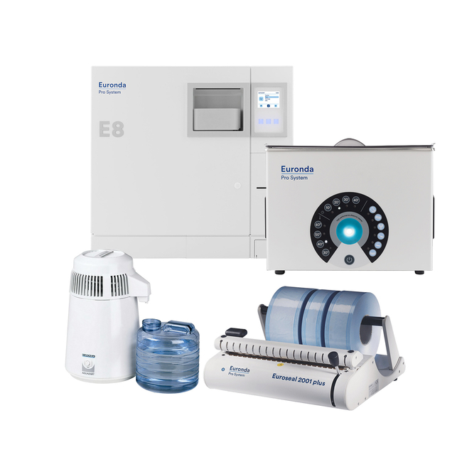 Euronda E8 – это автоклав B-класса с объёмом камеры на 24 литра. Он объединяет в себе лучшие технологии серии Euronda Pro System, такие как: простое управление, высокое качество стерилизации, длительный срок службы и надёжность при ежедневной работе.