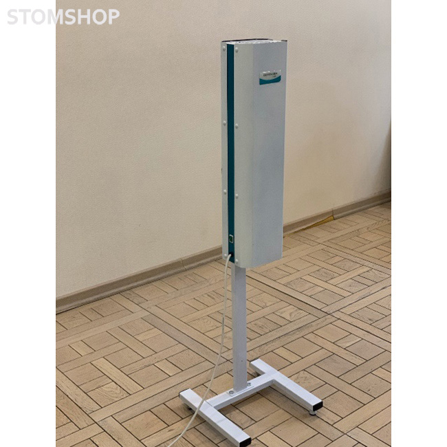 Стойка установлена на выкатных роликах, что позволяет свободно перемещать бактерицидный рециркулятор в помещениях. Отверстие в стойке позволяет крепить облучатель с помощью винтов. Также прибор можно разместить на стойке на специальном подвесе.