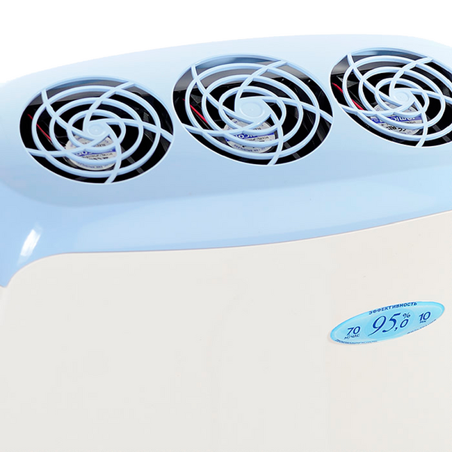 В корпусе рециркулятора установлены 2 безозоновые УФ-лампы Philips. В процессе облучения воздуха УФ-лампами с длиной волны 254 нм, оказывается широкое обеззараживающее воздействие на бактерии, споры, вирусы и грибок.