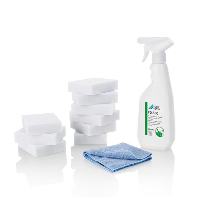 FD 360 - cредство для чистки и ухода за изделиями из искусственной кожи, 0.5 л, распылитель, 10 спонжей | Dürr Dental (Германия)