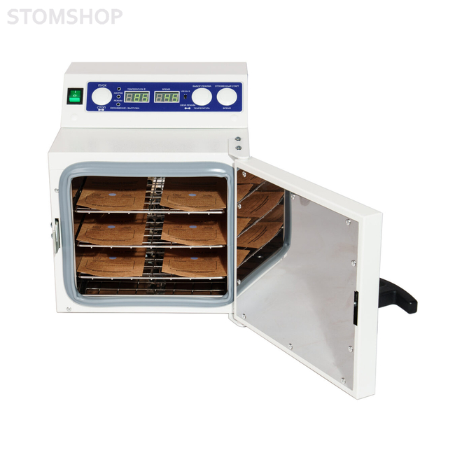 В данной модели стерилизатора предусмотрена система аварийного автоматического отключения нагревательного элемента. Она срабатывает с точностью до ± 3 °С в случае, если температура в стерилизационной камере поднимается до 215 °С.