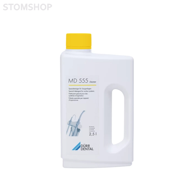 Cпециальный кислотный очиститель MD 555 cleaner не образует пены. Концентрат применяется для стоматологических аспирационных устройств и амальгамасепараторов. Рекомендуется регулярно применять средство после работы с профилактическим порошком, а также использовать при плохом качестве водопроводной воды (напр. высокая жесткость воды, труднорастворимые соли и.т.д.) и в случаях сточных трубопроводов с неблагоприятным уклоном.
