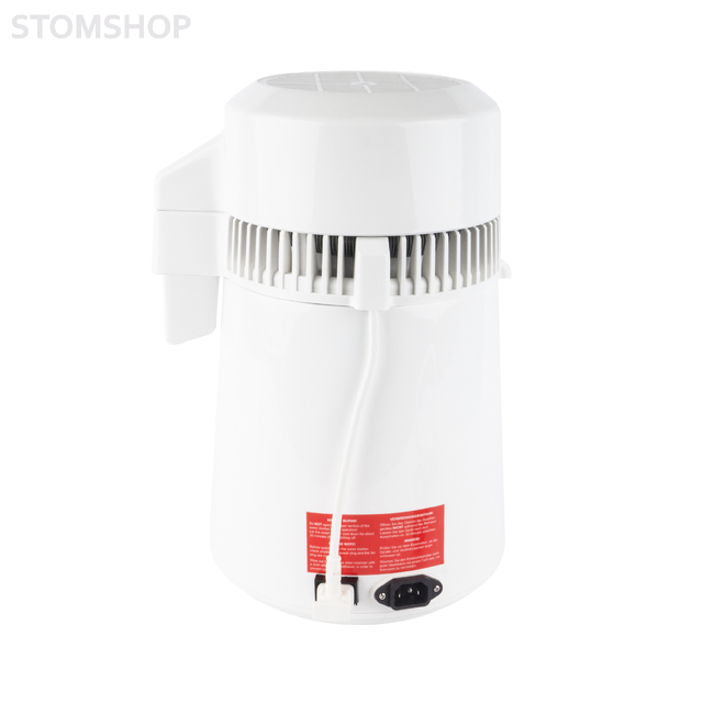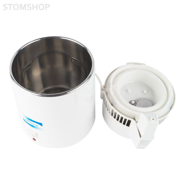 После включения устройства вода начинает нагреваться. Когда температура достигает 100˚C, вода закипает, и выделяется пар, который затем выходит через отверстие. Во время парообразования химические вещества, соли и осадки оседают в контейнере. Пар через систему охлаждающих змеевиков попадает в верхнюю секцию, где охлаждается и конденсируется в дистиллированную воду. Внутренняя колба выполнена из нержавеющей стали.