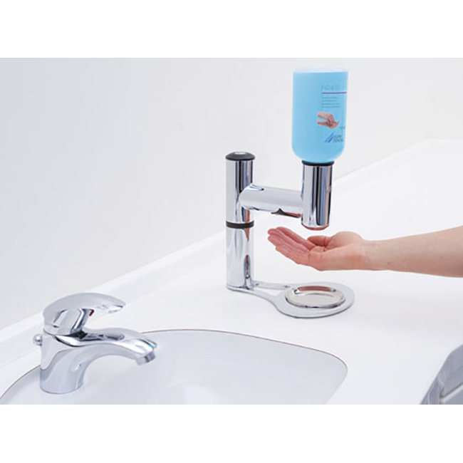 Сенсорный диспенсер для подачи препарата на руки. Автоматическая система дозирования в современном дизайне для подачи препарата HD 410 из 500 мл бутылки.