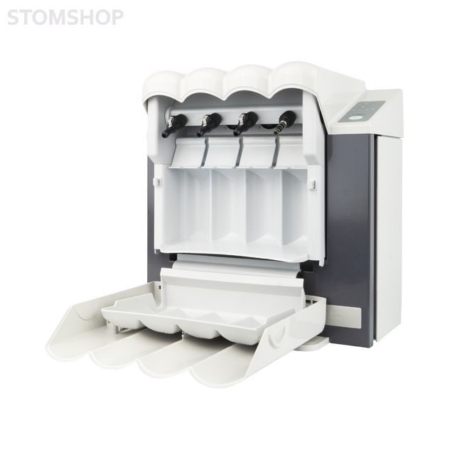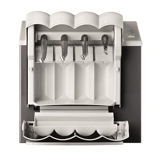 KaVo QUATTROcare® Plus 2124A - программно-управляемый прибор для чистки и смазки турбинных, угловых наконечников, а также головок к наконечникам. Прибор дополнительно подключается к источнику сжатого воздуха для дополнительной продувки спрей каналов и удаления излишков масла.