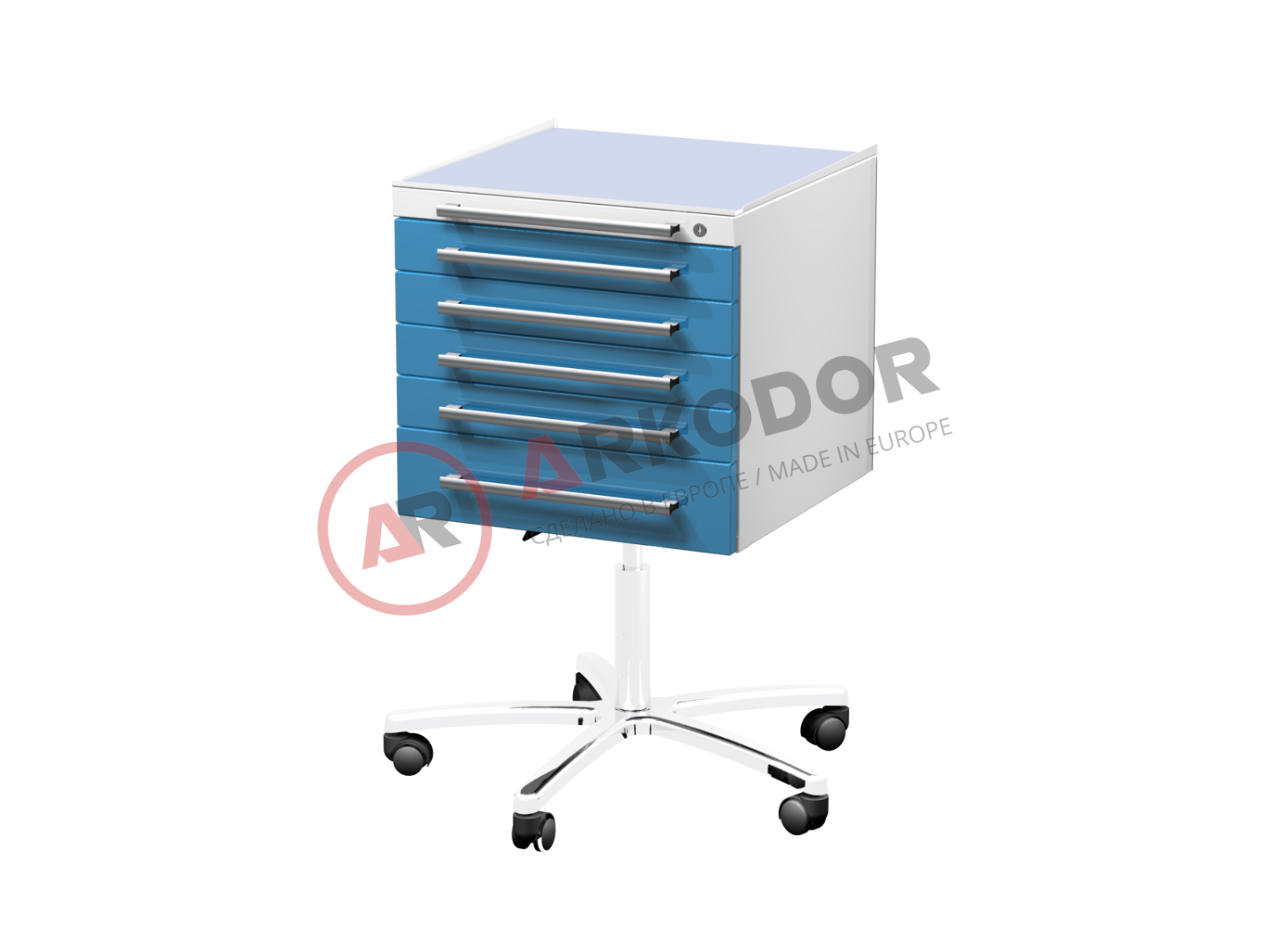 Мобильный столик врача (ассистер) AR-35.3 LUX предназначен для размещения на рабочей поверхности различных медицинских и стоматологических инструментов, оборудования и материалов. Столик изготовлен из металла с полимерным покрытием и оснащен пятью выдвижными ящиками с замками (по желанию) для хранения медпрепаратов, шприцов и расходных материалов. Столешница столика покрыта стеклом и имеет возможность регулировки высоты при помощи газ-лифта. Опорная площадка ø600 обеспечивает устойчивость столика при перемещении. Столик также имеет розетки для подключения дополнительного оборудования, такого как скейлер, апекслокатор, лампа и т.п. Столик подходит для использования в различных сферах медицины, таких как акушерство и гинекология, гастроэнтерология, детская хирургия, кардиология, онкология, оториноларингология, офтальмология, пластическая хирургия, стоматология общей практики, урология, хирургия и т.д. Благодаря наличию колес, столик легко перемещать в удобное для манипуляций расположение .