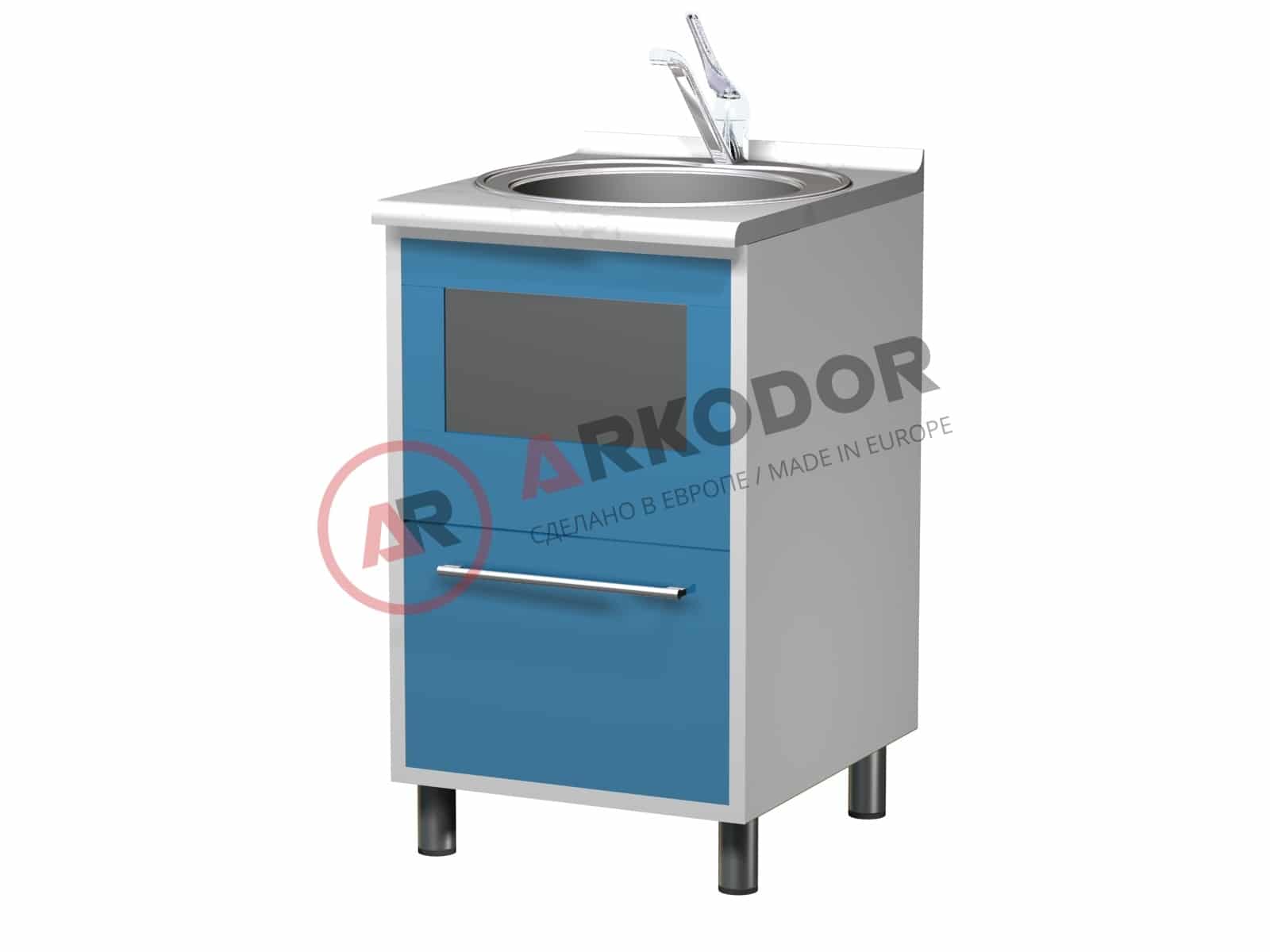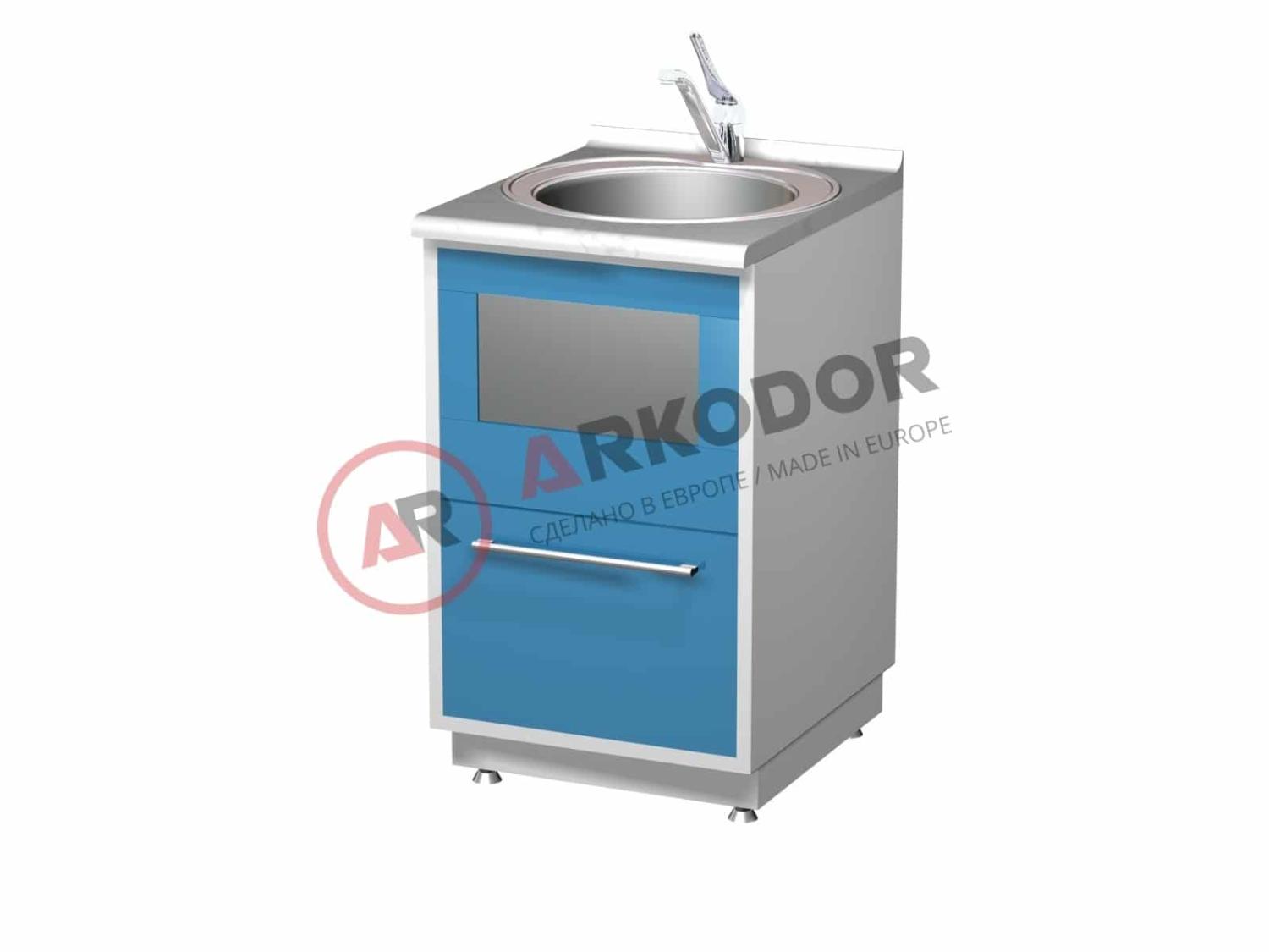 Металлическая тумба с выдвижным ящиком, откидной металлической шторкой для отходов, мойкой и смесителем, AR-04D, в880 х ш500 х г600мм