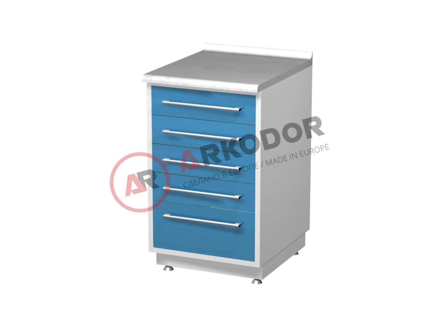 Металлическая тумба AR-16 с пятью выдвижными ящиками, в880 х ш500 х г600мм, Покрытие всех металлических деталей шкафа выполнено экологически чистой эпоксидной полимерно-порошковой краской, устойчивой к ударам, сколам и регулярной обработке всеми видами медицинских моющих и дезинфицирующих растворов.