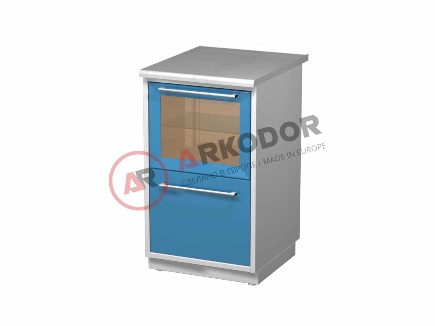 Металлическая тумба (Бактерицидный шкаф) AR-22C с выдвижным ящиком, распашной застекленной дверью, двумя металлическими выдвижными полками, с бактерицидной лампой, в880 х ш500 х г600мм – это современное и надежное решение для обеспечения безопасности и гигиены медицинских инструментов и материалов. Благодаря ультрафиолетовому излучению, которое уничтожает различные виды микроорганизмов, стерильность среды поддерживается до 7 суток. Шкаф имеет удобную конструкцию, которая позволяет легко перемещать его по помещению, регулировать высоту ножек, закрывать дверь на замок и выбирать подходящий тип ручек, рабочей поверхности и цвета. Шкаф подходит для разных отраслей медицины, таких как акушерство, гинекология, гастроэнтерология, кардиология, онкология, офтальмология, педиатрия, стоматология и многие другие.
