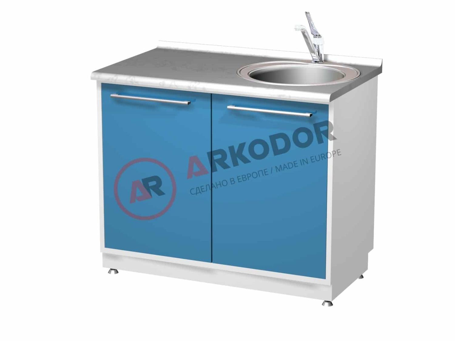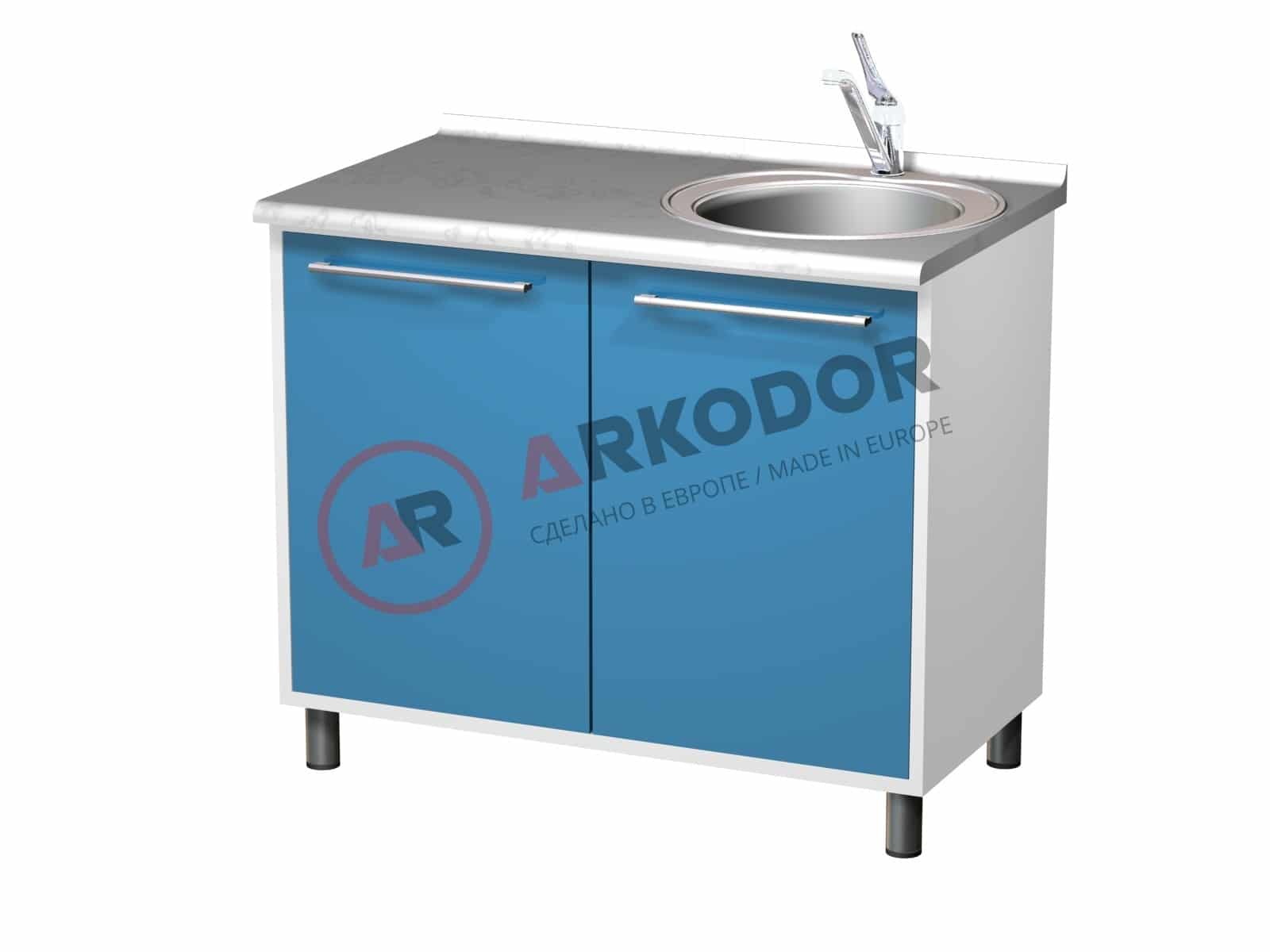 Металлическая тумба AR-26 с двумя распашными металлическими дверями, правой мойкой и смесителем, в880 х ш1000 х г600мм