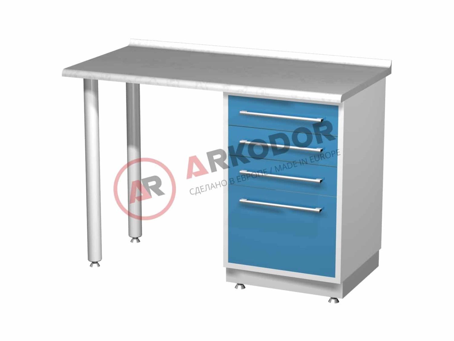 Стол лабораторный (тумба с четырьмя выдвижными ящиками), на столешнице стекло, в(760 или 880) х ш1200 х г600мм