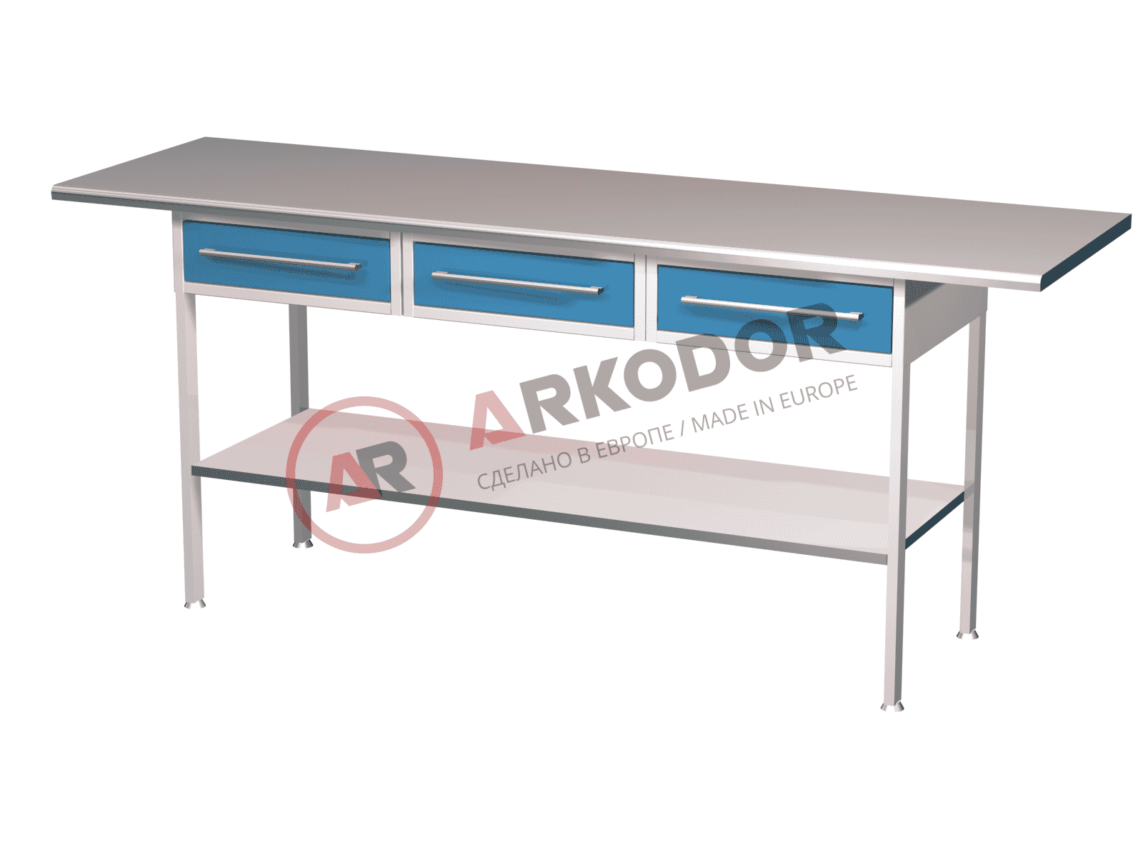 Каркас и ящики стола лабораторного для приборов и оборудования изготавливаются из металла с полимерным покрытием. Это обеспечивает высокую прочность, долговечность и защиту от коррозии. Полимерное покрытие также упрощает уход за столом и предотвращает загрязнение поверхности.