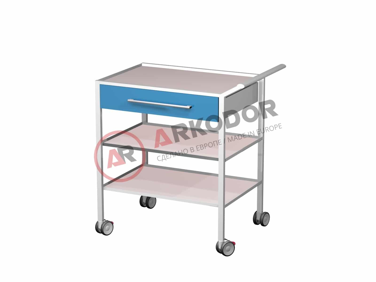 Тележка AR-H27 с выдвижным ящиком и двумя металлическими полками, сбоку ручка, в1000 х ш900 х г500мм Тележка AR-H27 – это удобный и практичный инструмент для хранения и транспортировки различных предметов. Она имеет выдвижной ящик и две металлические полки, на которых можно разместить необходимые вещи. Сбоку тележки есть ручка, с помощью которой можно легко перемещать ее по помещению. Размеры тележки составляют 1000 х 900 х 500 мм, что позволяет экономить пространство и подходить для любого интерьера. Тележка AR-H27 – это надежный и функциональный помощник для вашей клиники.