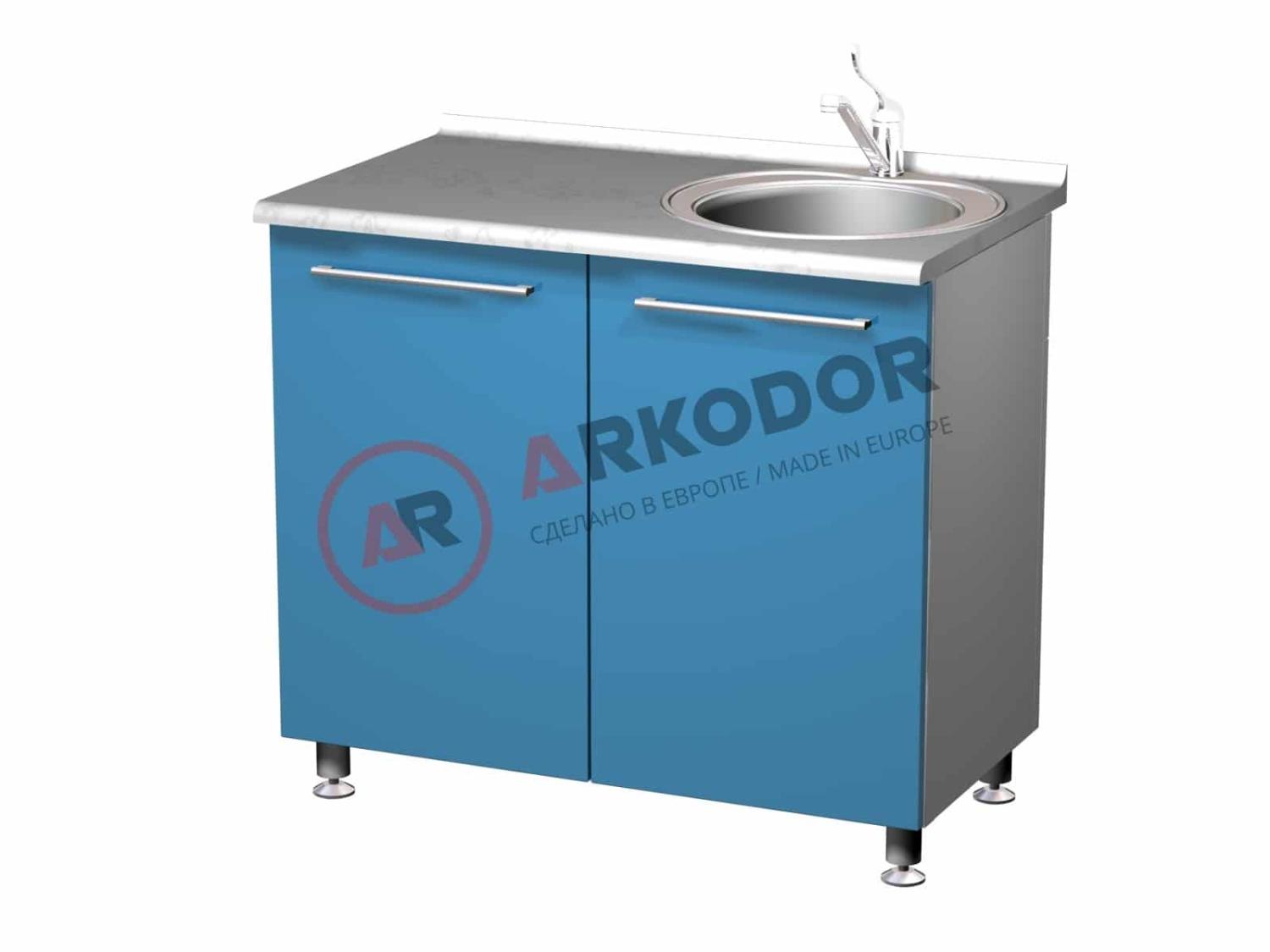 Металлическая тумба с двумя распашными металлическими дверями, правой мойкой и смесителем, в880 х ш1000 х г600мм – это удобный и практичный предмет мебели для оборудования медицинских учреждений. Тумба изготовлена из высококачественной стали, устойчивой к коррозии, воздействию химических реагентов и высоким температурам. Тумба имеет прочную конструкцию, легко моется и дезинфицируется.  Мойка справа имеет глубокую чашу, которая позволяет удобно мыть большие предметы. Смеситель локтевого типа обеспечивает гигиеничность и безопасность работы, так как не требует касания руками.