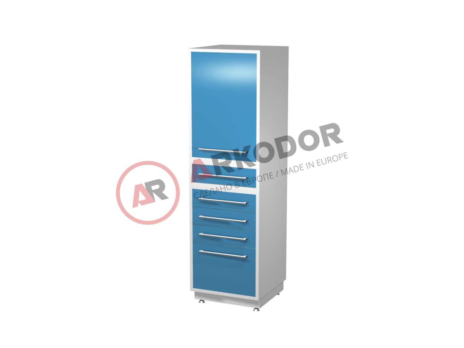 Шкаф AR-62 предназначен для хранения различных медицинских принадлежностей, таких как одноразовая одежда, маски, перчатки, дезинфекторы, бахилы, щитки, очки и другие расходные материалы, а также лекарства и хирургические инструменты. Шкаф имеет прочный металлический корпус с эпоксидным покрытием, которое защищает его от повреждений и воздействия химических реагентов. Шкаф оснащен распашной дверью, двумя полками и пятью ящиками, которые обеспечивают удобный доступ к содержимому. Шкаф также имеет регулируемые опоры, которые позволяют выровнять его на неровном полу и обеспечить плотное закрытие двери.
