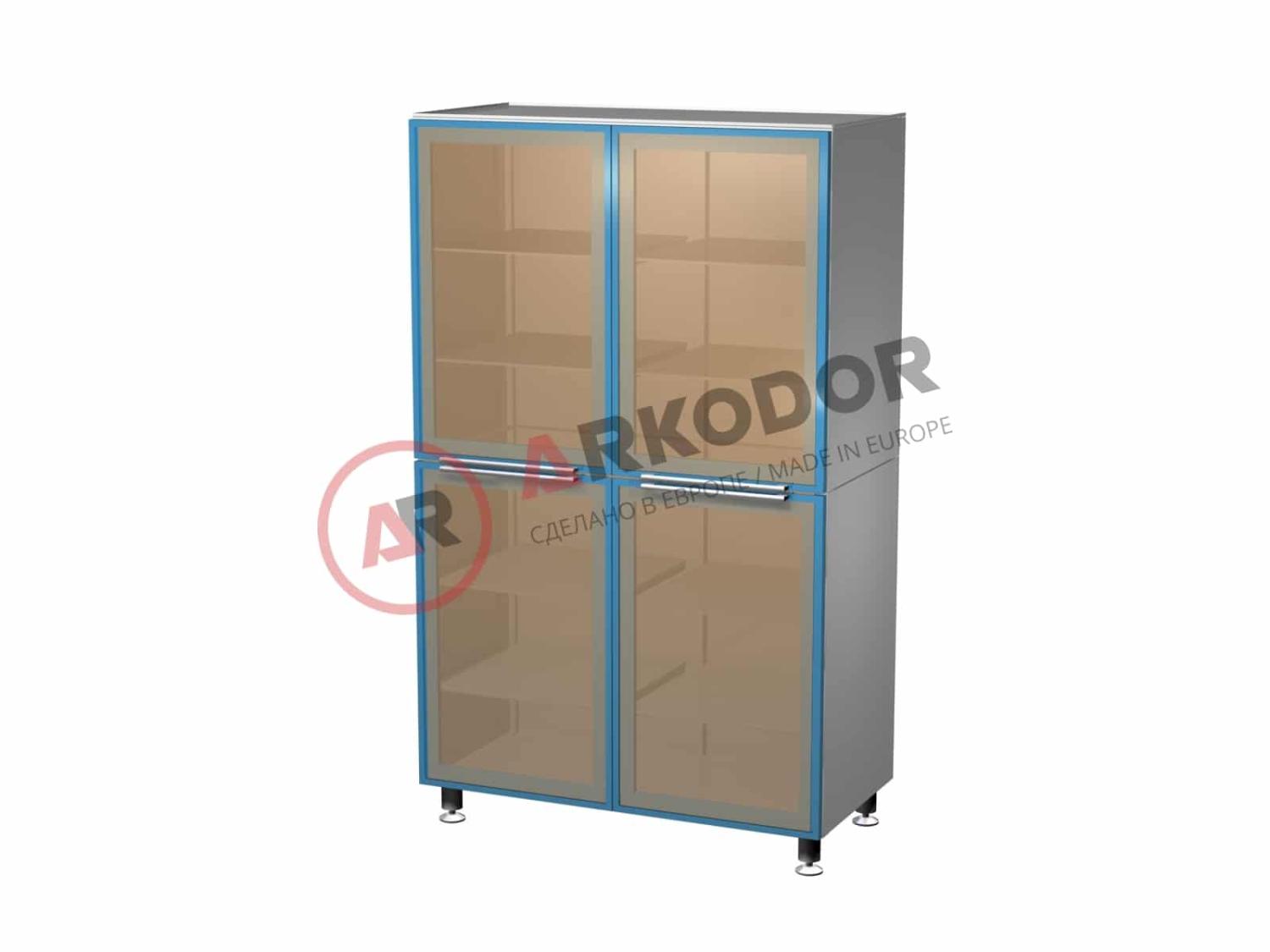 Шкаф с четырьмя распашными застекленными дверями, четырьмя стеклянными полками, в1635 х ш1000 х г500мм