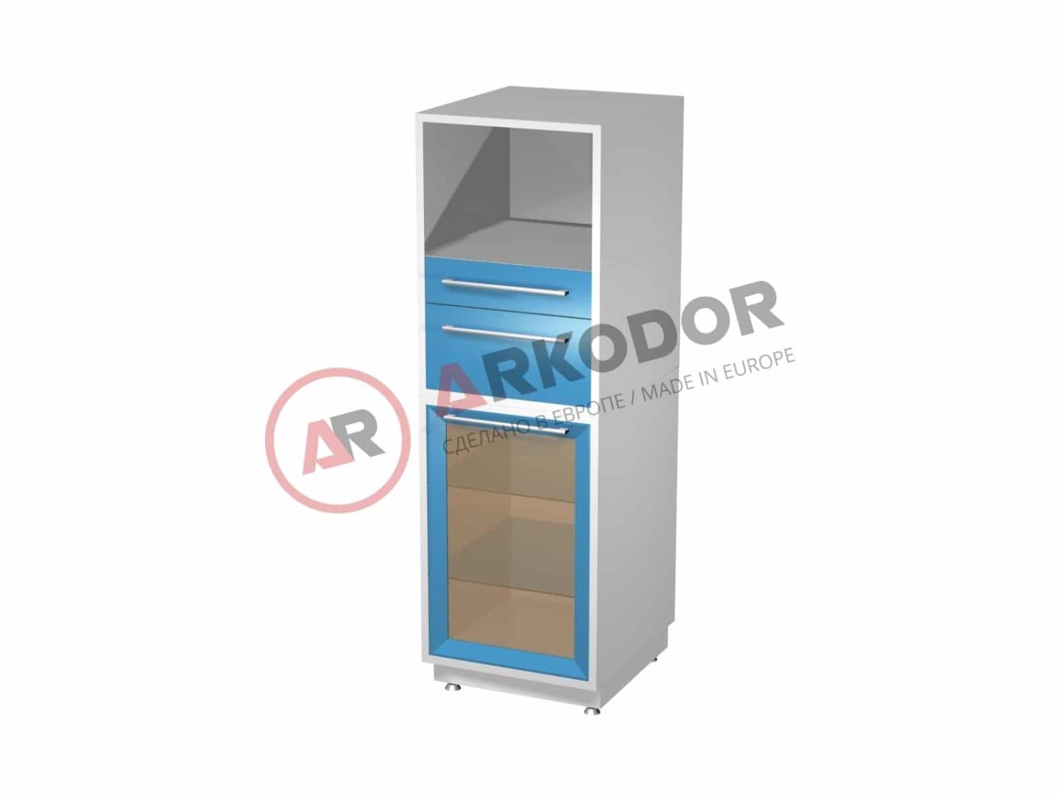 Шкаф AR-M38 для автоклава, и любых медицинских расходных материалов, лекарств, хирургических инструментов с двумя выдвижными ящиками и металлическая тумба с распашной застекленной дверью, двумя стеклянными полками, в1635 х ш500 х г500мм