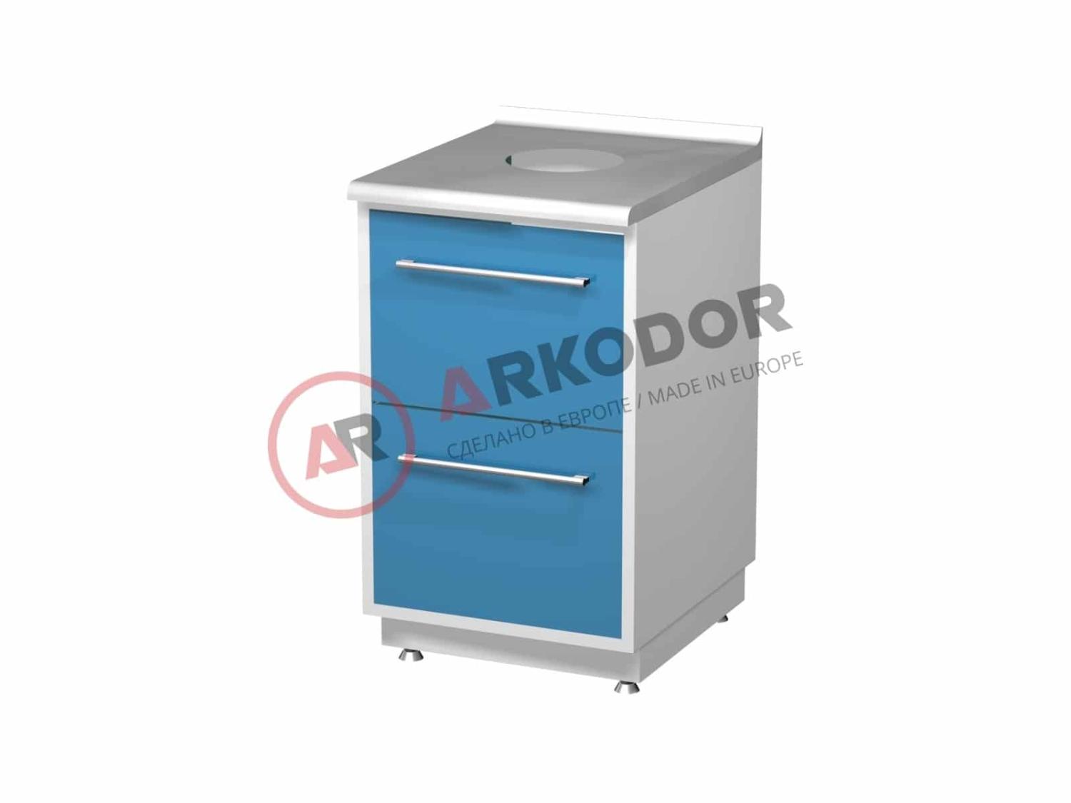 Tумба металлическая с выдвижным ящиком, откидной дверью для хранения гипса и отверстием для отходов гипса, в880 х ш500 х г600мм