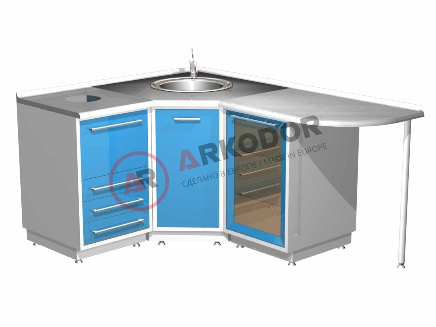 2. Металлическая тумба угловая с распашной металлической дверью, с мойкой и смесителем