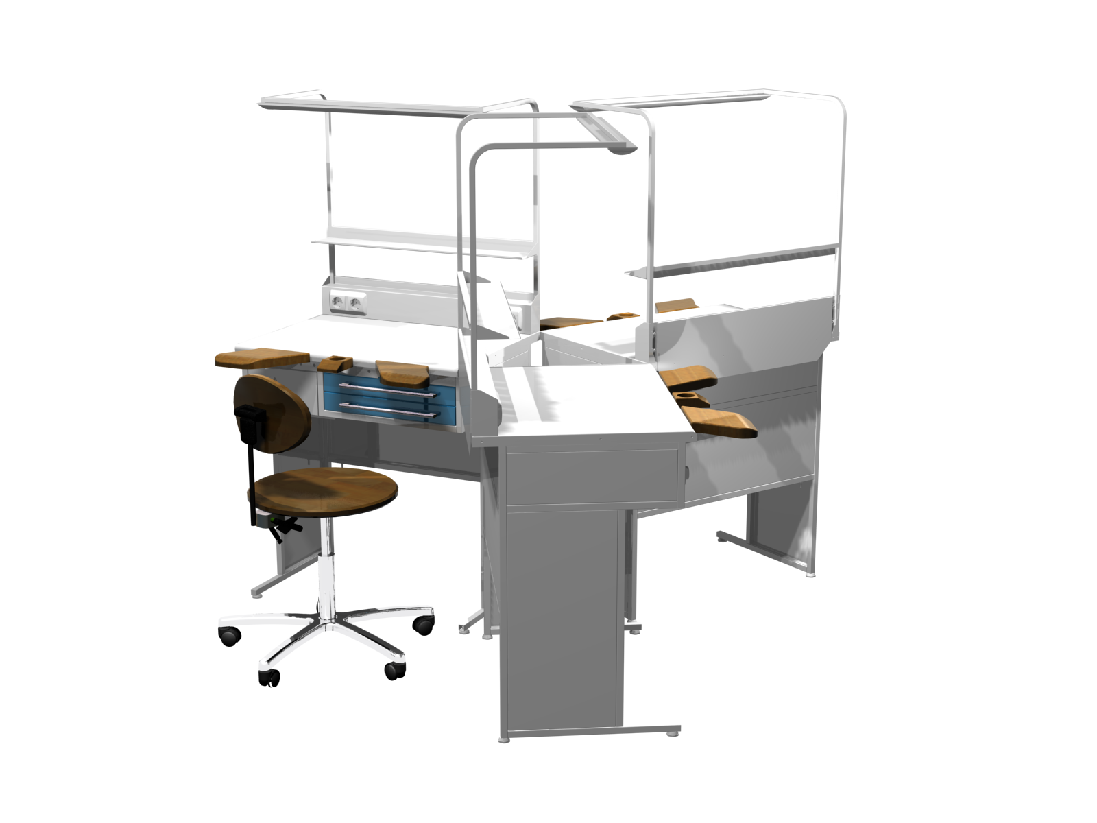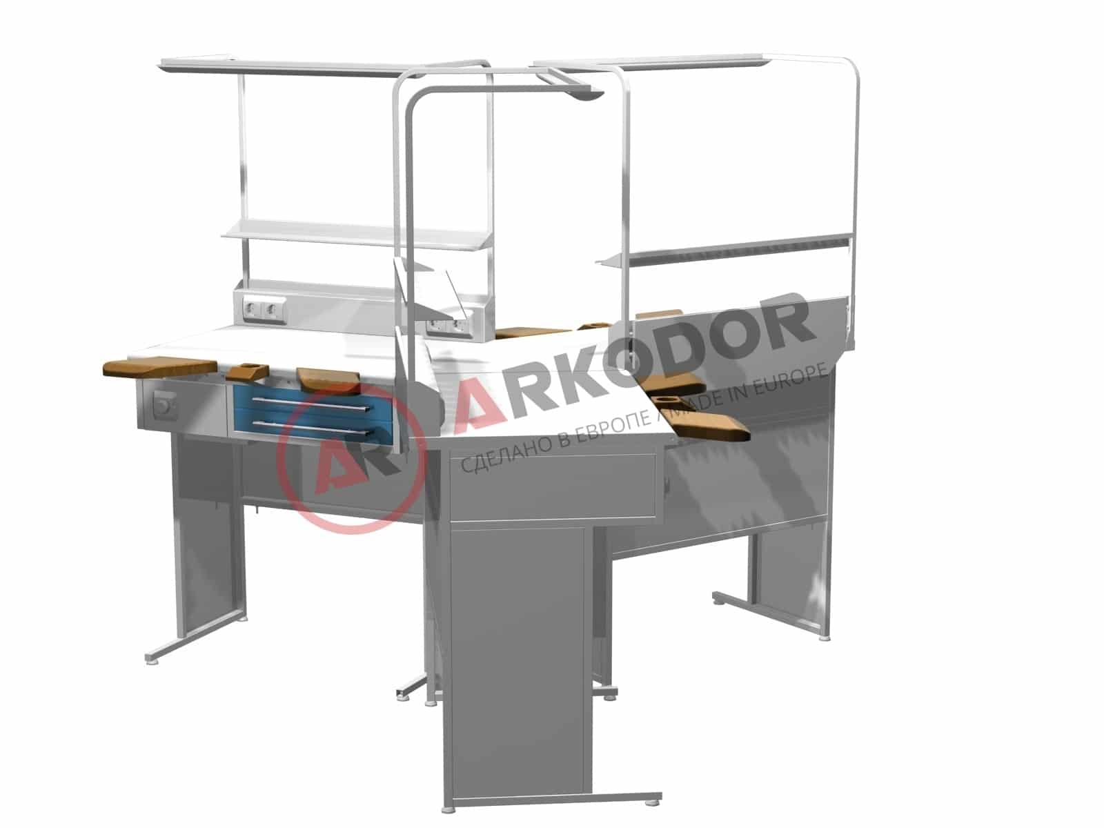Стол зуботехнический AR-E23 имеет размеры 2100x2100x1650 мм и предназначен для работы трех зуботехников. Каждое рабочее место оснащено светильником, полкой, четырьмя розетками, финагелем и вакуумной помпой-вытяжкой с регулируемой мощностью. Также в столе имеются шесть выдвижных ящиков для хранения инструментов и материалов. Для удобства работы каждый зуботехник может использовать два подлокотника. Стол зуботехнический AR-E23 обладает высоким качеством и надежностью, а также легко устанавливается и обслуживается. Комплект: 1. Светильник – 3 шт 2. Полка 70×800 – 3 шт 3. Двенадцать розеток 4. Финагель и вакуумная помпа-вытяжка с регулируемой мощностью – 3 шт 5. Шесть выдвижных ящиков 6. Два подлокотника – 3 комплекта