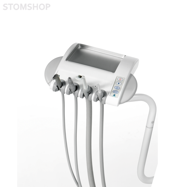 • Столик ассистента на 2 инструмента на подвижном кронштейне (2 шланга с насадками слюноотсоса и пылесоса).