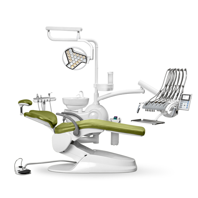Mercury Safety M2 - стоматологическая установка с верхней подачей инструментов с 24-диодным светильником.