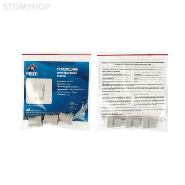 Переходник предназначен для подключения аспирационных наконечников с диаметром 11 мм к трубкам аспирационной системы стоматологической установки.