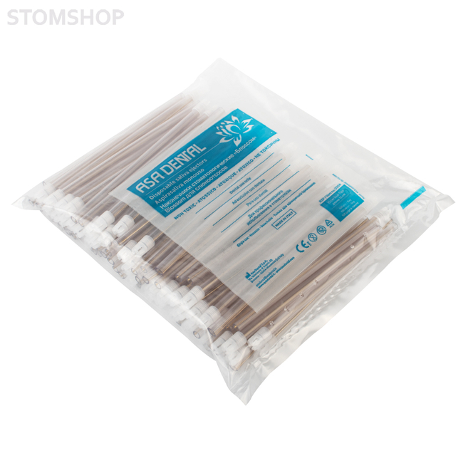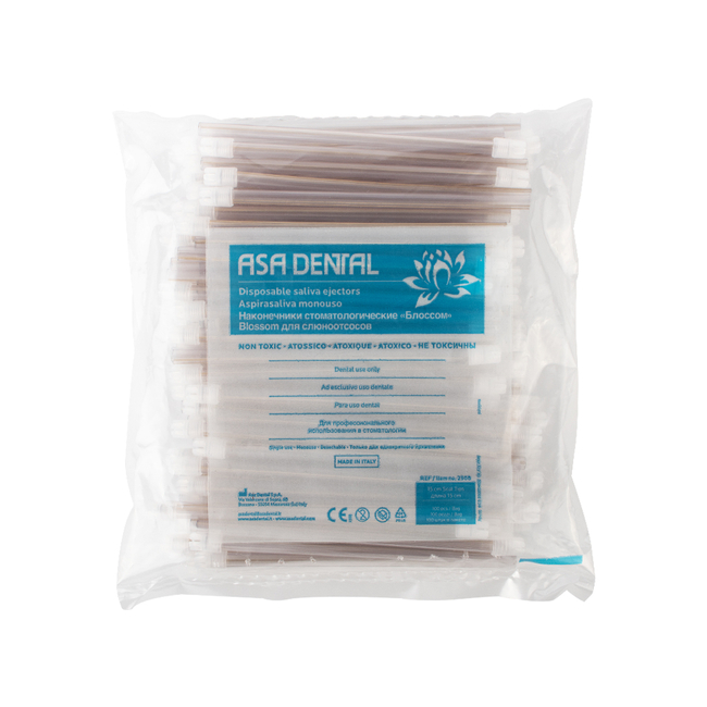 Слюноотсосы BLOSSOM прозрачные от итальянского производителя Asa Dental, 100 штук в упаковке.