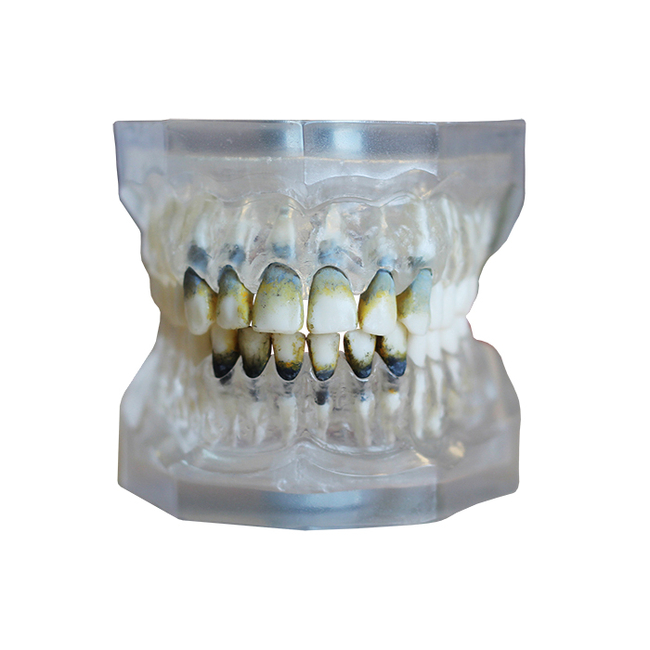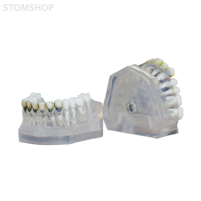 ЧВН-28П представляет собой денто-модель верхней и нижней челюстей с прозрачной десной, анатомически соответствующую зубочелюстному аппарату взрослого пациента. Смыкание реализовано в стабильной окклюзии, с комплектом из 28 модельных зубов. Предназначена для отработки терапевтических манипуляций по удалению поддесневых отложений. Все зубы съемные, что позволяет многократно использовать модель. На торцах денто-модели имеются специальные пазы для установки окклюдатора.