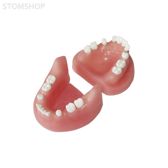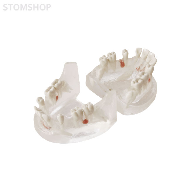 Модель верхней и нижней челюсти с частичным отсутствием зубов для хирургической практики. Модель с ретинированными палатинально 13, 23 зубами, ретенированными вестибулярно 33, 43 зубами, а также с ретенцией 18, 28, 38, 48 зубов. Все остальные зубы адаптированы для освоения навыка экстракции. Десна розовая, эластичная, заменяемая, позволяет делать разрезы, накладывать швы. Модель изготовлена из материала соответствующего по плотности естественной кости (D1, D2, D3 или D4 на выбор). По вашему желанию в модель могут быть добавлены кистозные и гранулематозные изменения в области отдельных зубов, либо может быть изготовлена модель, применяемая только для экстракции зубов.
