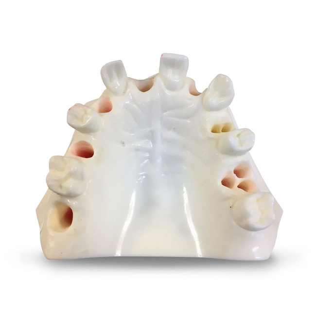 Модель верхней челюсти из синтетического материала имитирующего кость, для практики импланталогии. Красная заменяемая десна для практики наложения швов. Плотность кости D1, D2, D3, D4 на выбор. 8 случаев возможных лунок.