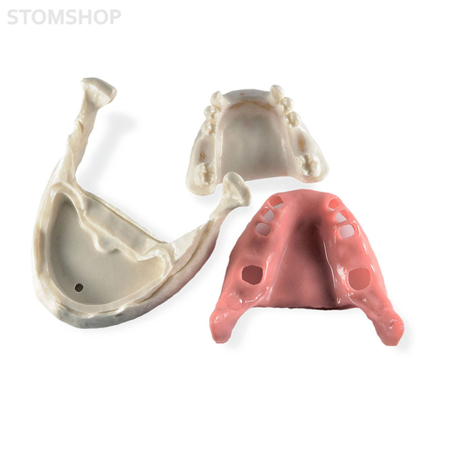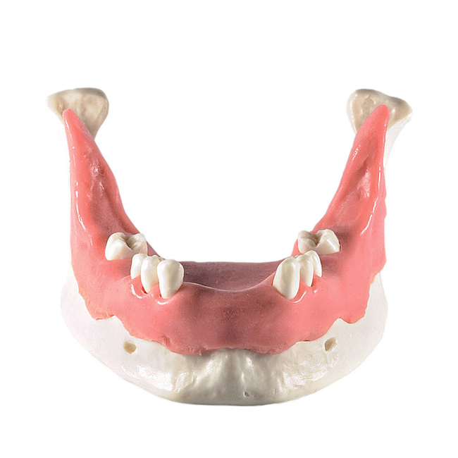 Модель нижней челюсти выполнена из материала, соответствующего по плотности естественной кости. Выполняется на заказ от D1 до D4. Заменяемая эластичная десна позволяет делать разрезы и накладывать швы.