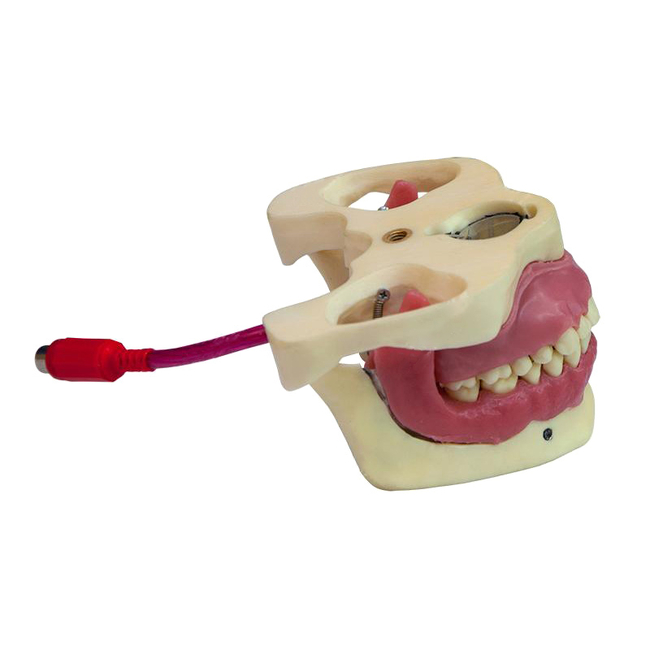 Используется для отработки навыков проводниковой анестезии. Для правильного проведения процедуры модель оснащена световой системой контроля. Система зонирования выполнена при помощи металлического напыления. При инъекции в правильное для клинического случая место загорается зеленый индикатор, а при неправильном проведении анестезии загорается красный индикатор. Денто-модель адаптирована для установки в тренажеры ТС-Т.01 и ТС-Г.01, оснащена источником питания.