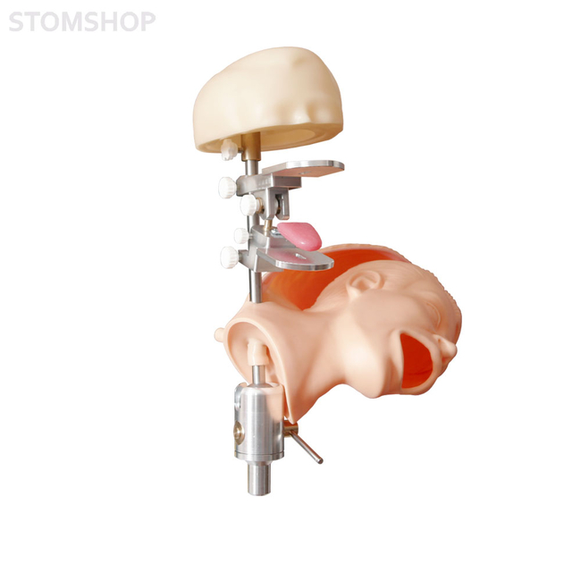 Фантомная голова для практики включает в себя черепную коробку, артикулятор, эластичную маску и язык, крепящиеся на штатив. Фантом можно установить на стол, в стол или на кресло при помощи специальных креплений. Артикулятор позволяет смыкаться сменным челюстям в правильной центральной окклюзии, возможны латеральные движения.
