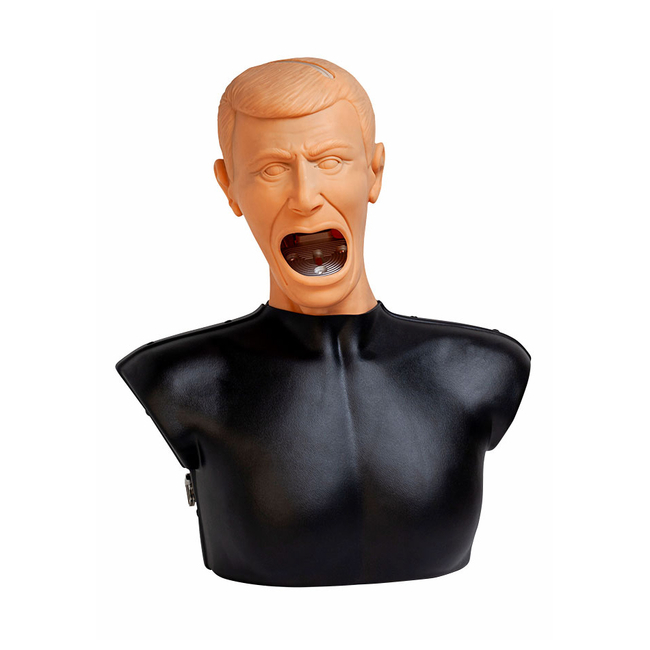 Вода, попадающая в полость рта фантома, собирается на дне лицевой маски и выводится через небольшую трубку, которая может быть подсоединена к подходящий емкости.