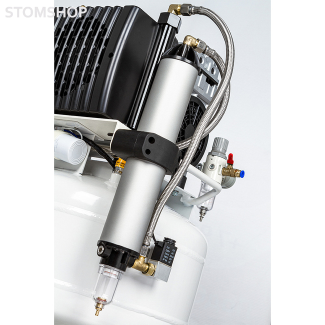 HK-2EW-35 – это воздушный безмасляный компрессор для двух стоматологических установок с осушителем и ресивером на 35 литров от производителя Mercury.