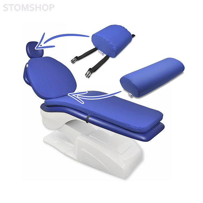 Комплект для кресла пациента на стоматологической установке: М2 – универсальный матрас с памятью формы + модель 12 – компактный ортопедический подголовник. Подойдет к любому креслу пациента.