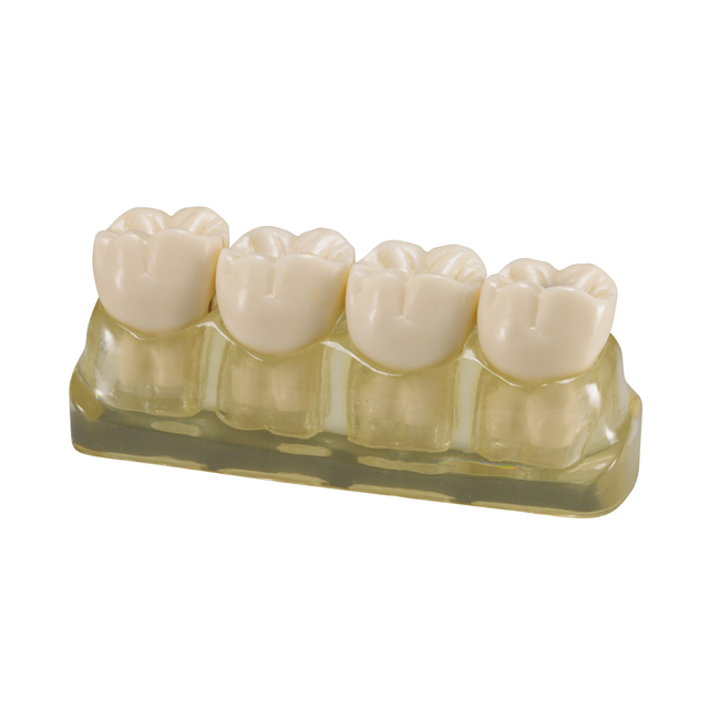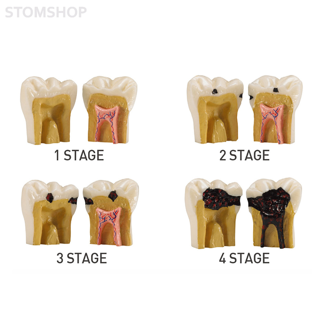 Модель из 4-х зубов, демонстрирующая различные стадии кариеса.