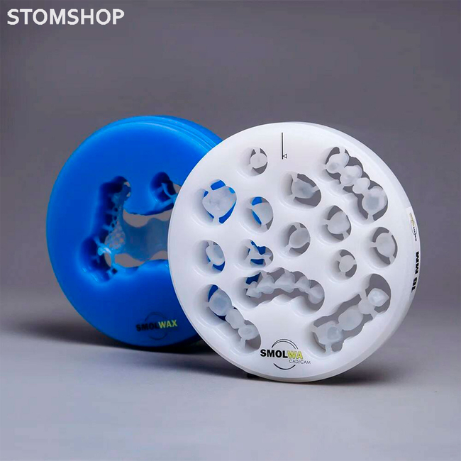 Высококачественный фрезерный CAD/CAM воск для моделирования от производителя SmolWax. Представлен в нескольких цветах: белый, серый, синий и голубой.