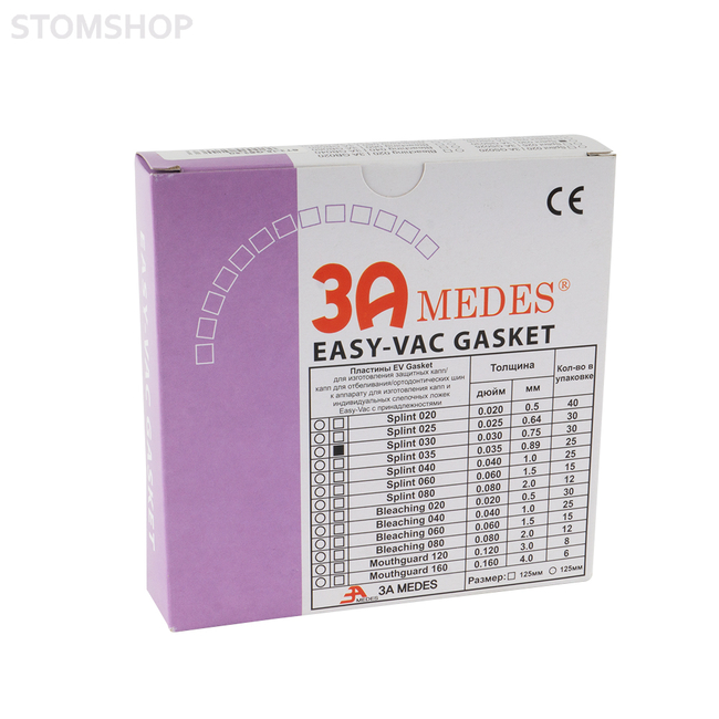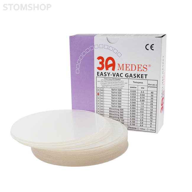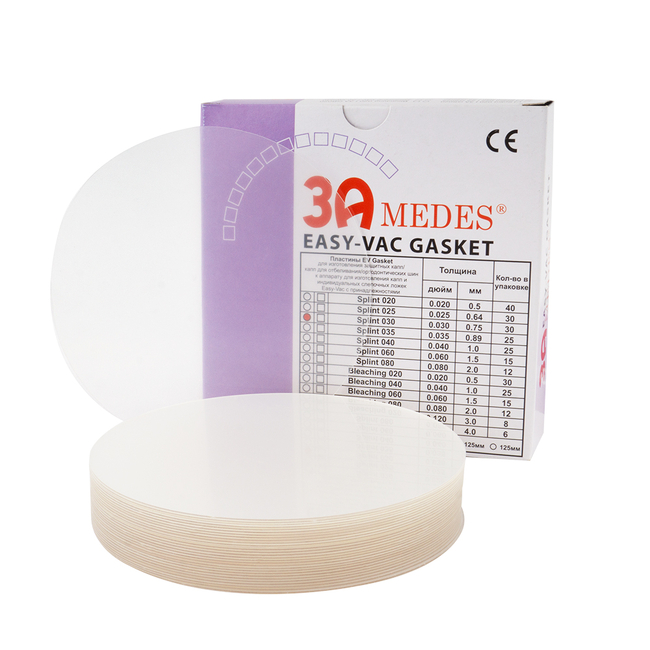 Пластины EV Gasket для изготовления ортодонтических шин, круглые, Splint 030 (диаметр 125 мм, толщина 0,75 мм) 30 шт.