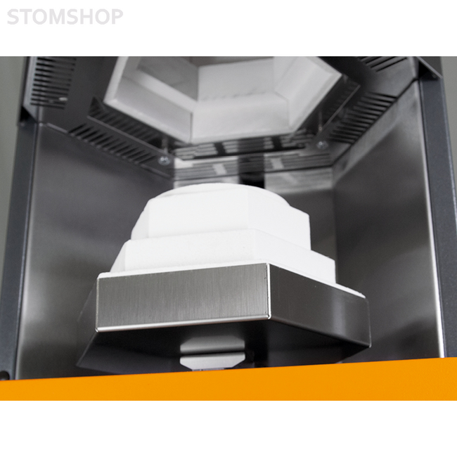 Муфельная печь HT-2/M/ZIRCON-120 – это высокоэффективный инструмент, обладающий большой производительностью. Размер рабочей камеры позволяет вам обрабатывать три лотка для спекания Ø=120 мм при работе в режиме CLASSIC. Благодаря системе нагрева с шестью высококачественными нагревательными элементами из силицида молибдена, вы сможете спекать заготовки за 76 минут в режиме SPEED.