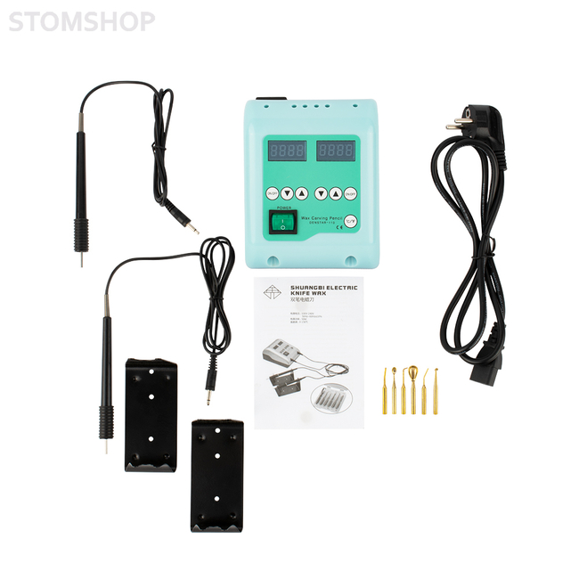 Электрошпатель ручной JG-204 с двумя независимыми рукоятками для работы с восковыми ортопедическими моделями в зуботехнической лаборатории.