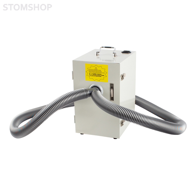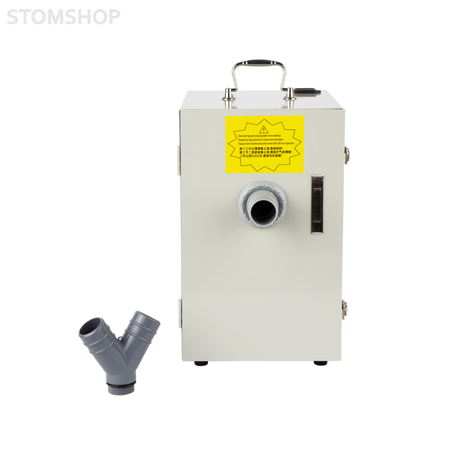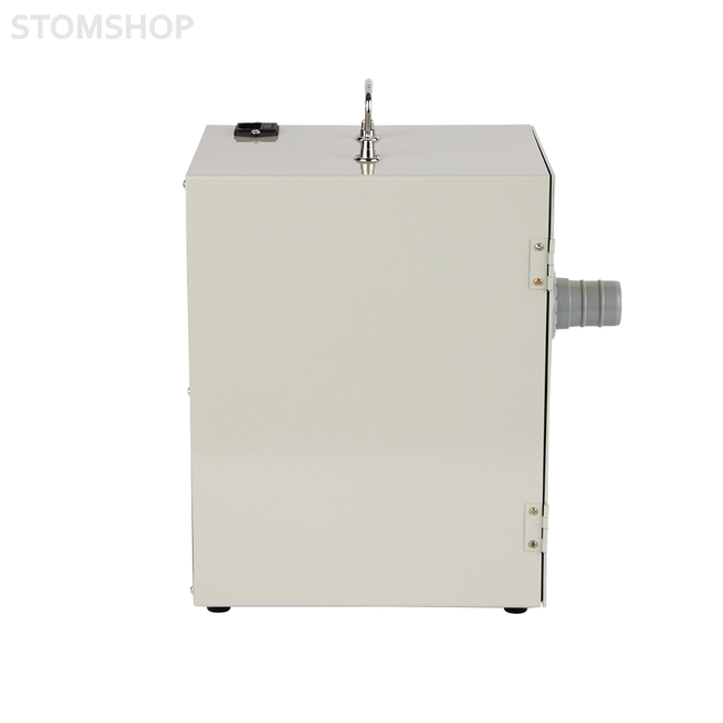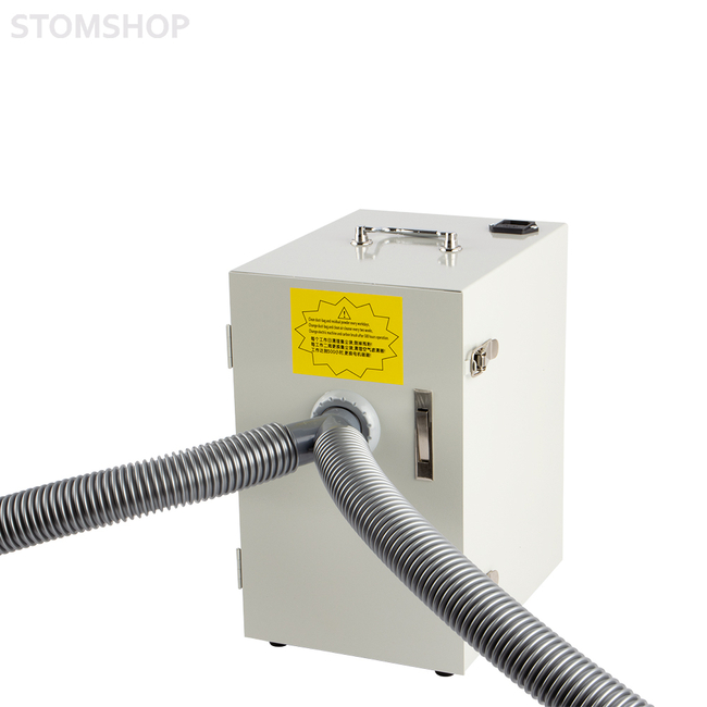 Зуботехнический пылесос JG-208 для двух рабочих мест. Устройство применяется в зуботехнических лабораториях и предназначено для удаления пыли и мелких отходов, которые образуются при обработке зуботехнических материалов. Пылесос подключают к триммерам, сверлильным и разрезным станкам, к финагелям зуботехнических столов, а также к любому другому обрабатывающему оборудованию, где необходим отвод загрязнений из рабочей зоны.