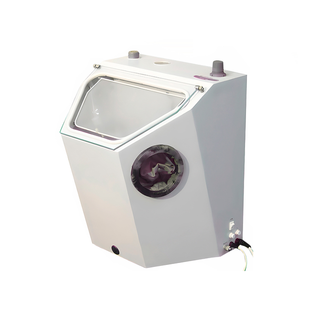 Аппарат оснащен эжектором для абразивной обработки отливок, угол наклона которого можно регулировать для удобства обработки изделия, а также ручным грифелем для тонкой обработки. Аппарат оснащен автоматической системой циркуляции абразива, что вместе с большим вместительным бункером для тонкой абразивной фракции, создает возможность длительной работы аппарата без перезагрузки абразива.