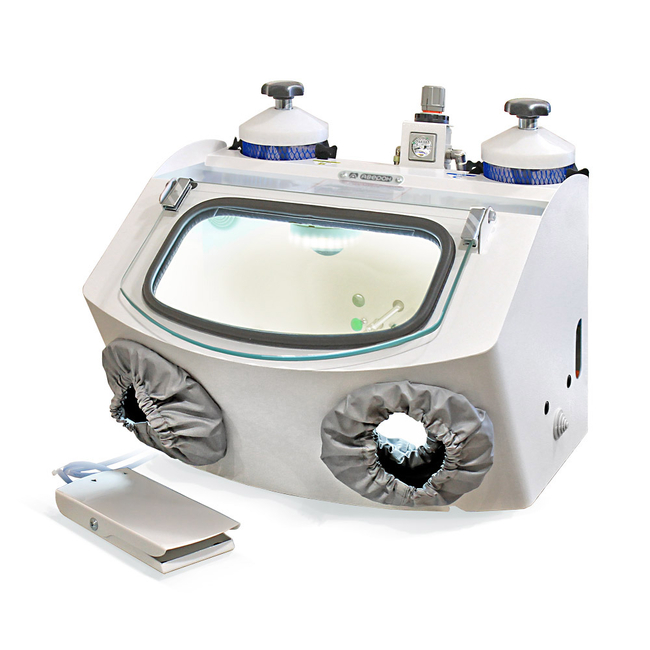 АСОЗ 5.2 НЬЮ - пескоструйный аппарат для зуботехнических лабораторий, рестайлинг популярной модели АСОЗ 5.2 У. В комплект входят 2 струйных модуля МС с твердосплавными соплами диаметром 1 мм и 1,5 мм.